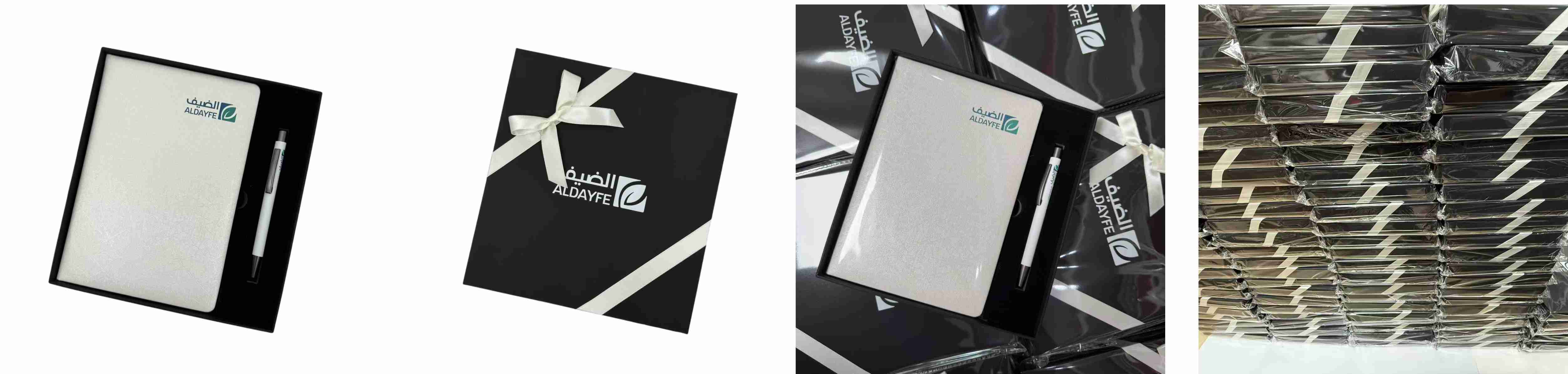 Biorąc pod uwagę uwagę naszych cenionych klientów na szczegóły, uruchomiliśmy to wykwintne pudełko upominkowe w stylu arabskim z białą łukiem wstążkowym i unikalnym regionalnym elementem saudyjskim. Łączy piękno i profesjonalizm. „Aldayfe” jest drukowane na wysokiej jakości pudełko z czarnej faktury z technologią UV, pokazującą luksusową konsystencję. Przyciągające wzrok logo „Aldayfe” sprawia, że jest to idealny wybór prezentu, który może pozostawić głębokie wrażenie na ludziach. Jest również wyposażony w długopis: logo kolorów jest drukowane na długopisie, tworząc pełną serię. Jeśli szukasz cennego prezentu dla współpracowników lub klientów, ten zestaw prezentów jest doskonałym wyborem na działania marketingowe.
