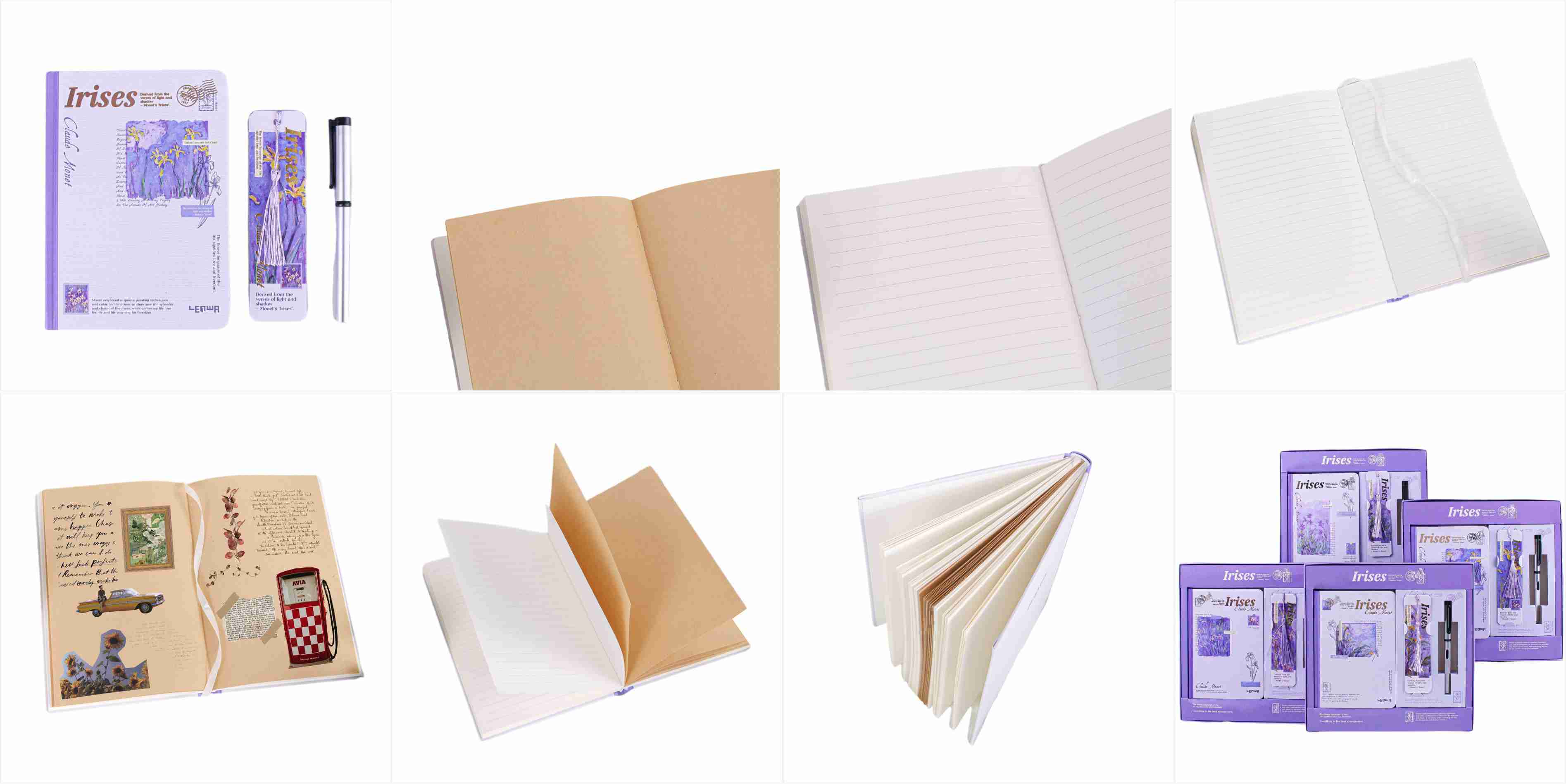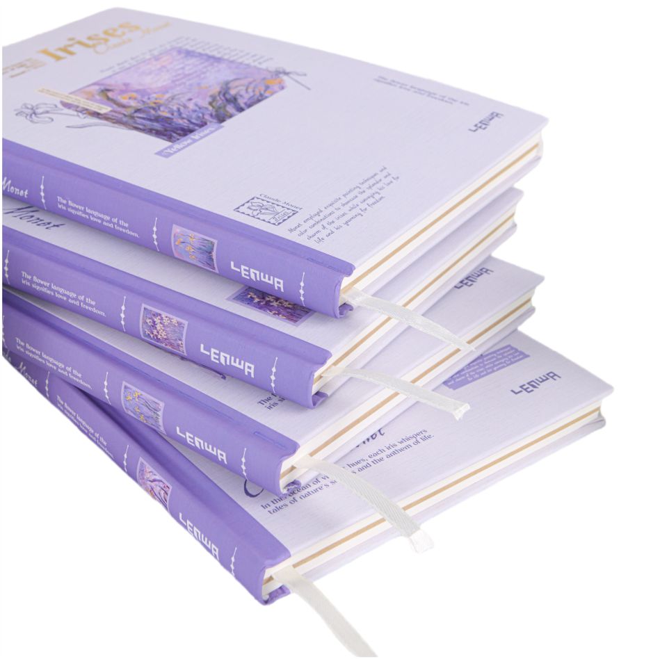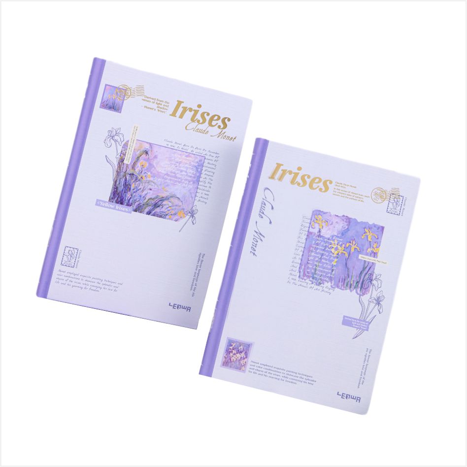 Pomysł na okładkę pochodzi z klasycznego obrazu Moneta Iris, który jest oparty na lilii, łącząc mgliste piękno impresjonistycznego malarstwa z miękką formą tęczówki. Każdy notatnik wydaje się być fragmentem artystycznym zaczerpniętym z ogrodu Monet, z francuskim romansem i naturalnym zainteresowaniem. Po umieszczeniu na Dest jest to elegancka dekoracja; Trzymana w dłoni jest to kolekcja sztuki, dzięki czemu pisanie jest wspaniałym momentem dialogu z mistrzami sztuki.