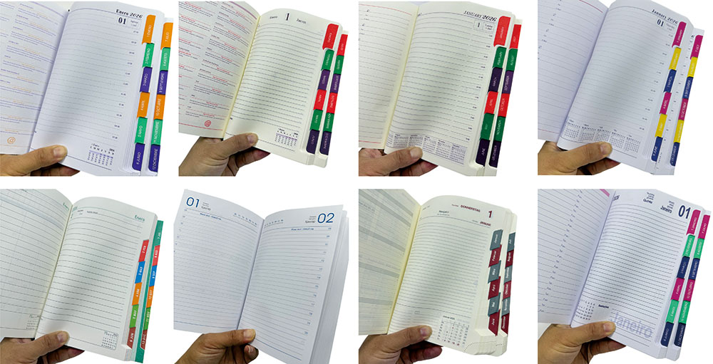 Strona indeksu docelowego: Miesiąc kolumny etykiety wycięcia z boku, ustaw 6 kolorowych stronicowania, szybko zlokalizuj datę.